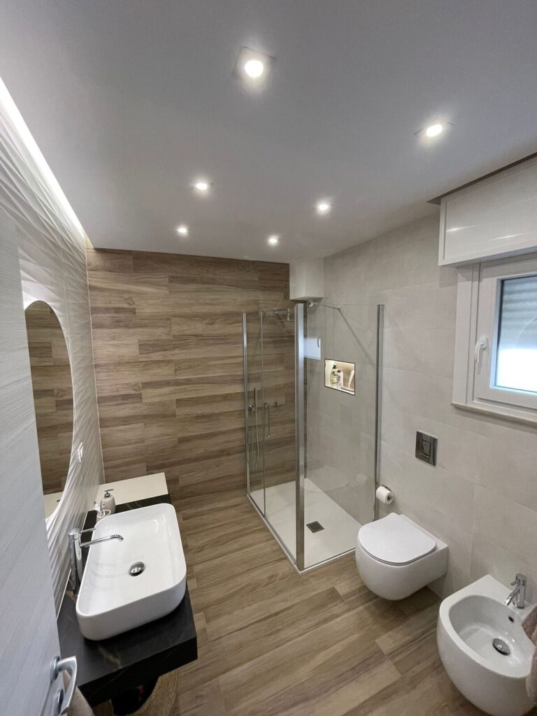 L’intervento progettuale ha consentito di realizzare un’ampia cucina-soggiorno, tre camere da letto e due bagni. Anche in questo caso particolare attenzione è stata rivolta alla “luce” sia quella naturale che quella artificiale, per la quale è stato appositamente redatto uno studio sui corpi illuminanti da inserire e sulla loro disposizione.
